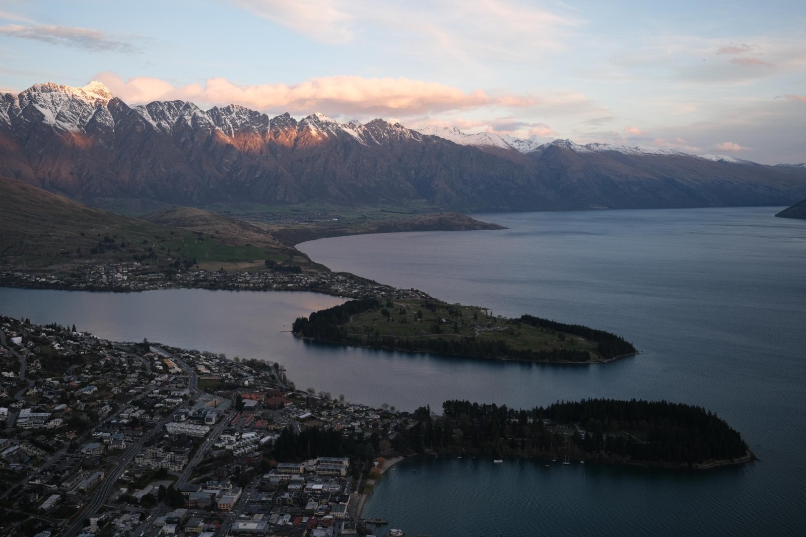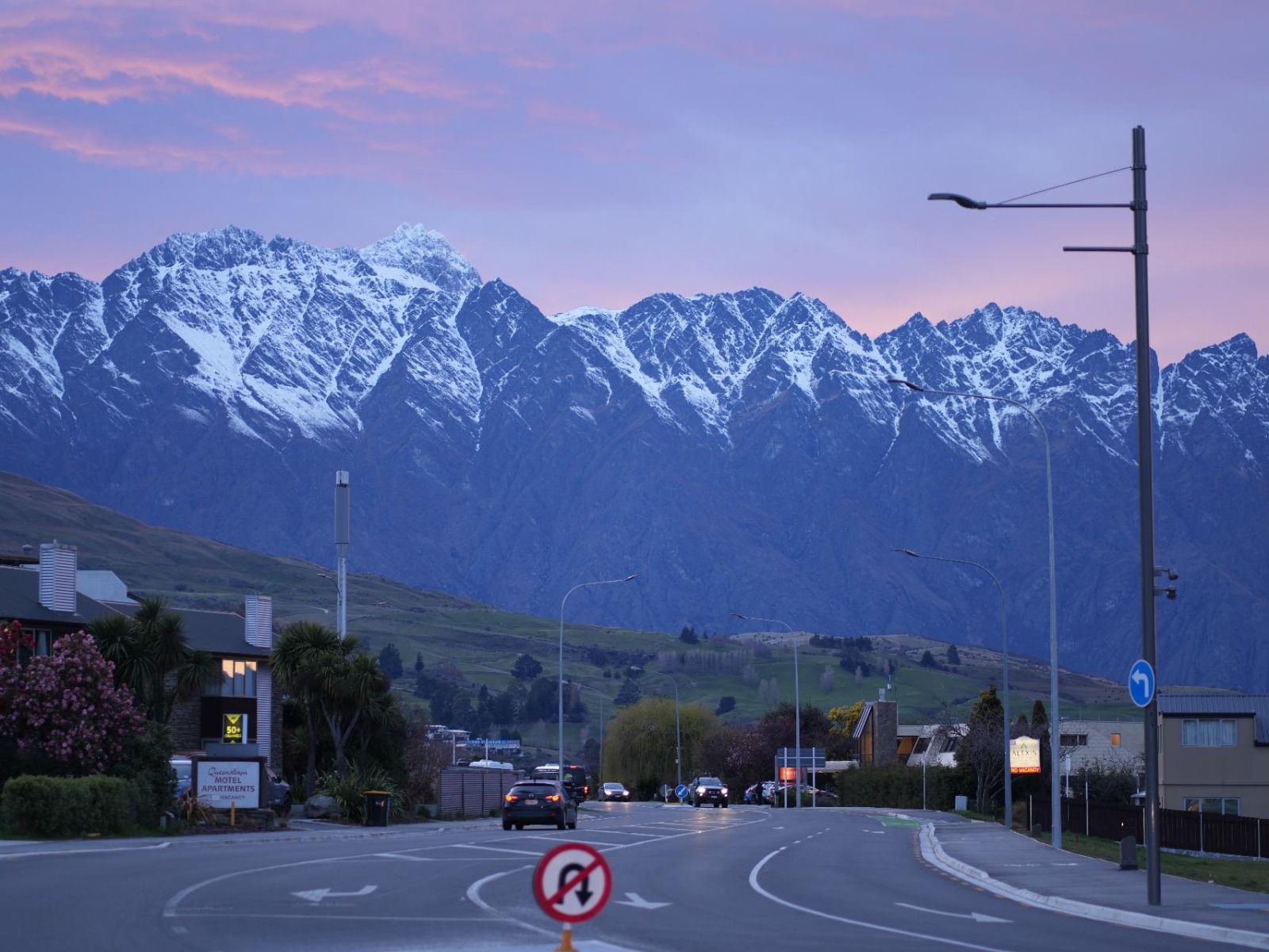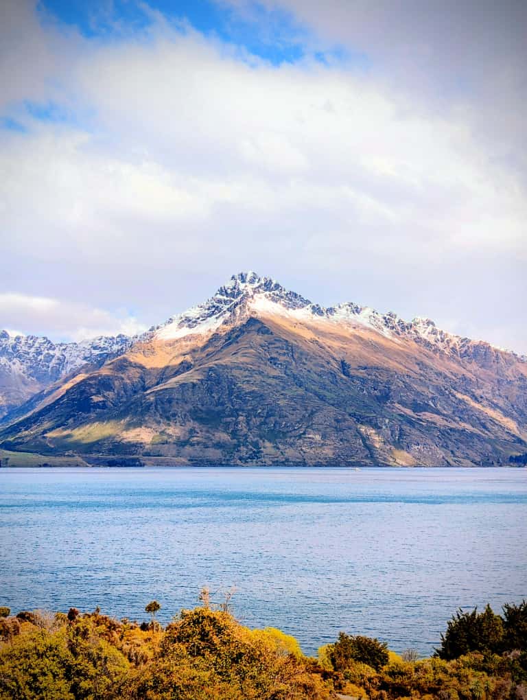 皇后镇标志性的连绵雪山, 平静的湖水, 朝霞晚霞, 初见美爆了.